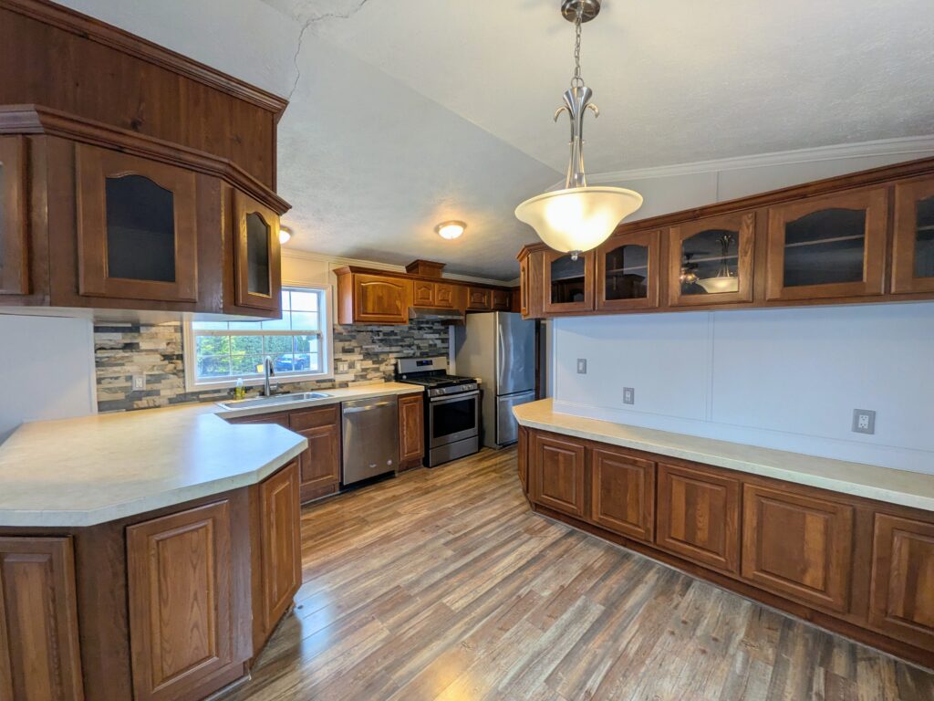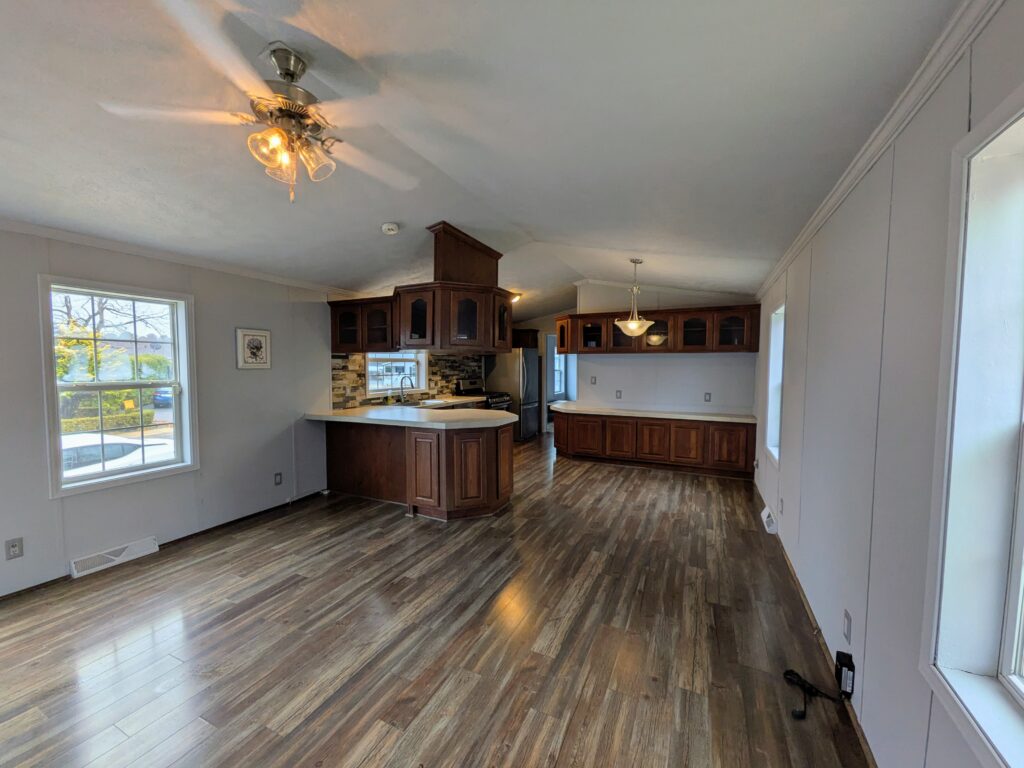 CONTINGENT. This move-in ready, 2 bedroom, 2 full bath home is waiting to be filled with joy this holiday season. Home features a spacious living area and expansive kitchen (dishwasher included)/dining area with cabinets galore! Master bedroom has a newer walk-in shower and new toilet. Laminate flooring throughout. Main bathroom has a tub/shower combo with skylight for plentiful natural light. Central AC, forced hot air heating. Washer/dryer included. Home sits on a stoned front lot.